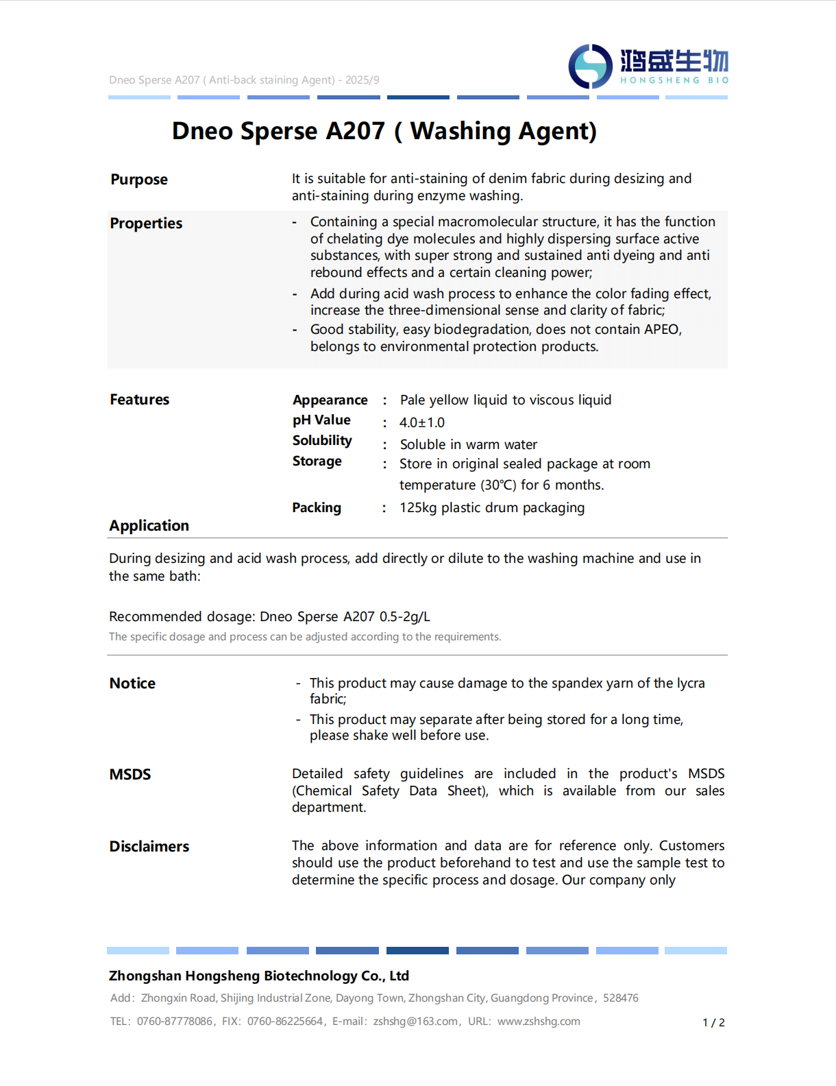 Dneo Sperse A207(Antiback stain agent)